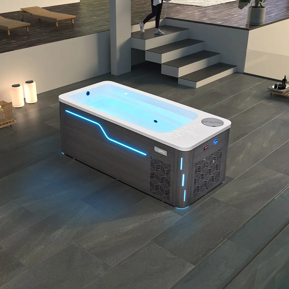 Корпус купели оснащен качественной PU‑изоляцией, которая минимизирует теплопотери и повышает КПД системы охлаждения. Общее энергопотребление составляет 0,85 кВт, что позволяет подключать оборудование к стандартной однофазной электросети. В базовый комплект включены утепленная спа‑крышка и удобная дренажная система, которые упрощают эксплуатацию и помогают сохранять температуру воды между процедурами.